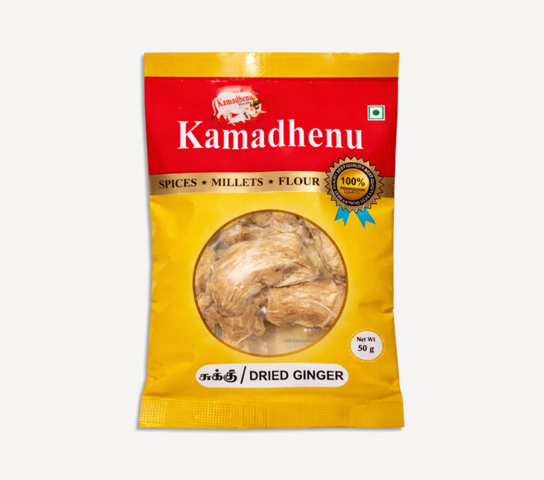 Kamadhenu Dry Ginger is a premium spice known for its strong aroma and warming flavor. Perfect for teas, masalas, sweets, and traditional remedies, it adds natural richness to recipes. Carefully processed for purity, it supports healthy digestion and authentic homemade taste.